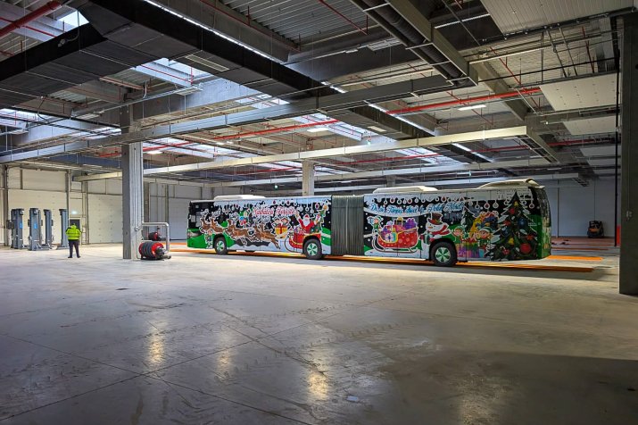 Pe lângă garajul pentru 157 de autobuze, complexul cuprinde stațiile de încărcare aferente și alte 6 clădiri pentru asigurarea mentenanței parcului auto.