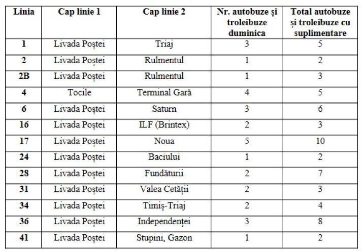 Linii pe care vor fi suplimentate mijloacele de transport în comun: